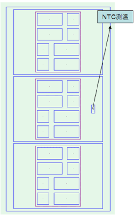 Schematic of simulation results of temperature distribution profile in IGBT NTC and diodes: