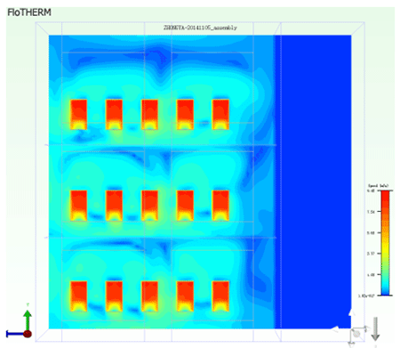 Schematic of simulation results of intake airflow velocity distribution profile for the module: module
