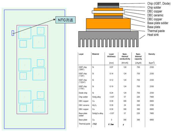 上左圖為英飛凌內部結構圖及發熱元件示意圖