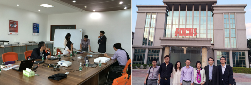 (左圖:清溪生產基地會議室就大功率散熱器量產項目進行溝通交流。右圖:與日本客人清溪生產基地辦公樓前留影。)