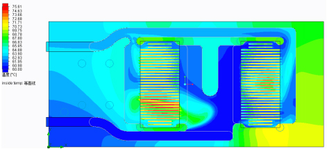 IGBT水冷板外殼溫度變化仿真示意圖: