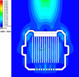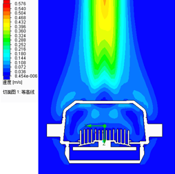 仿真模型示意圖及相關參數: 環境溫度:25℃,芯片熱耗:24W,散熱片:表面黑色陽極,輻射率:0.85。
